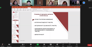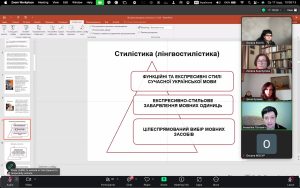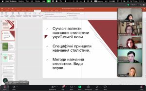 Професійний діалог зі здобувачами вищої освіти та колегами стосувався сучасних аспектів навчання стилістики української мови, специфічних принципів і методів навчання лінгвостилістики і видів стилістичних вправ.